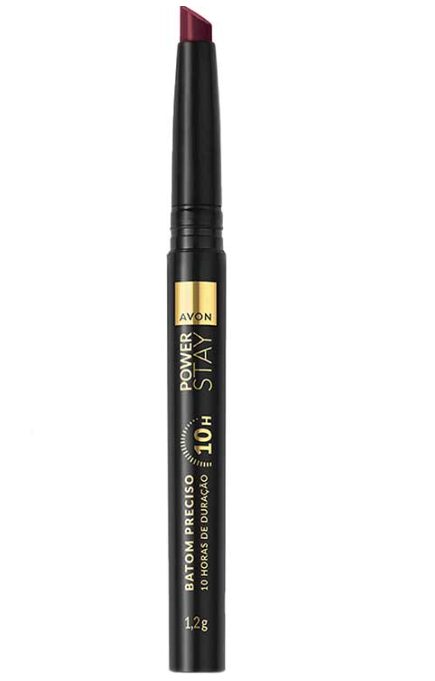 O Batom Preciso Avon Power Stay 10h é seu batom preferido do dia a dia. Dura 3x mais que seu batom comum, e seu formato preciso garante o contorno definido e preenchimento dos lábios. São 10 cores matte de alto impacto que duram até 10h sem craquelar, borrar ou desbotar.