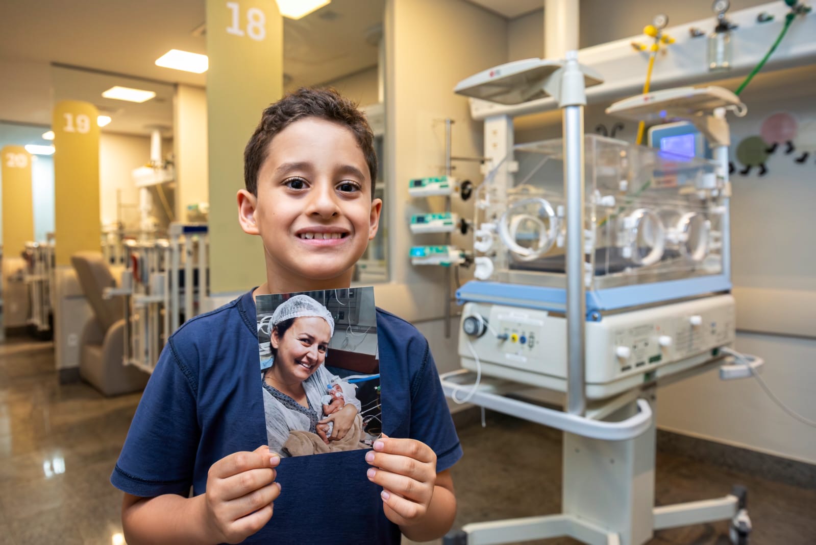 A história da brasiliense Gisele Barbosa, de 43 anos, reforça essa mensagem. Mãe do Vinícius, que hoje tem 8 anos, ela enfrentou 62 dias de UTI neonatal ao vê-lo nascer com apenas 31 semanas. Gisele recorda que grande parte da internação foi marcada por muito medo e incertezas. Nos primeiros dias, ela chegava ao Hospital Santa Lúcia temendo por más notícias; em outros, a conquista era poder apenas tocar a mão do filho pela portinhola da incubadora.