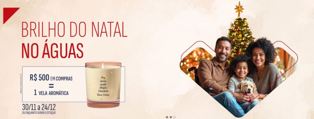 Dinâmica: a cada R$ 500 em compras, clientes podem trocar seus cupons fiscais por uma vela aromática. A troca acontece no 1º piso, próximo à Praça de Alimentação. O brinde é limitado a uma unidade por CPF. O regulamento pode ser consultado em aguasclarashopping.com.br/