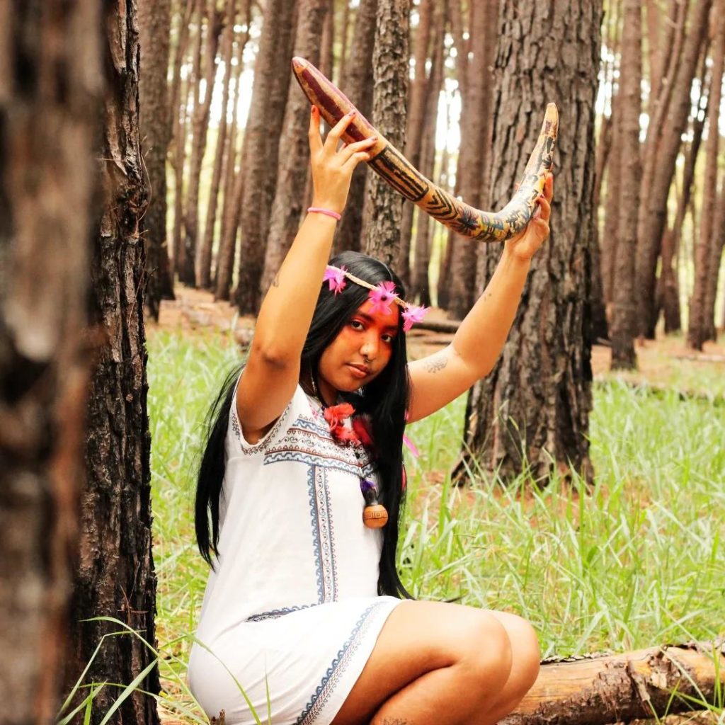 Sob essa perspectiva, Kessia Daline Krahô exalta a cosmovisão cultural dos Mehin, enfatizando a conexão sagrada entre as mulheres indígenas, a natureza e todos os elementos que compõem o universo. “Nós, mulheres indígenas, estamos intimamente ligadas à terra e aos ciclos que sustentam a vida”, reflete a artista.