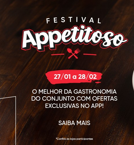 Até o dia 28 de fevereiro, o Festival Appetitoso vai tomar conta das operações gastronômicas do Conjunto Nacional, que vão oferecer descontos exclusivos, além de ofertas no modelo ‘compre e ganhe’. Basta o cliente instalar o aplicativo do shopping e ativar as ofertas que achar mais apetitosas. Os cupons já estão disponíveis.
