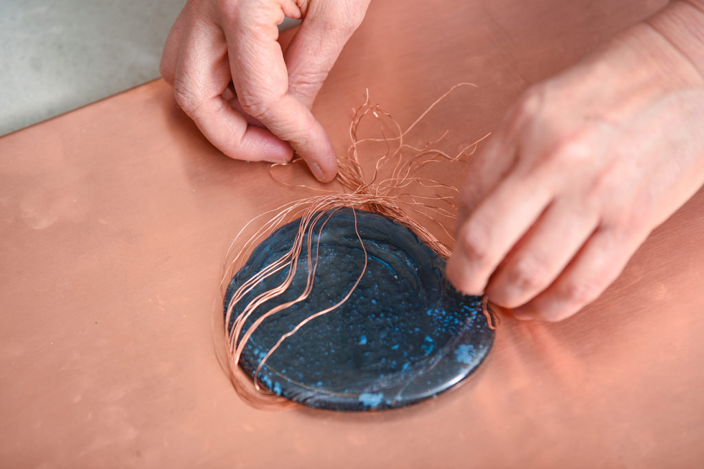 A curadoria é assinada pelo artista plástico Bisser Nai, búlgaro radicado em Brasília, que destaca o caráter singular do trabalho de Claudia. “Ela encontra a magia do vidro em fusão com o metal, em uma técnica complexa e ancestral, que remonta aos vitrais medievais da Europa. O resultado são obras cheias de luz, verdadeiros caleidoscópios”, afirma.