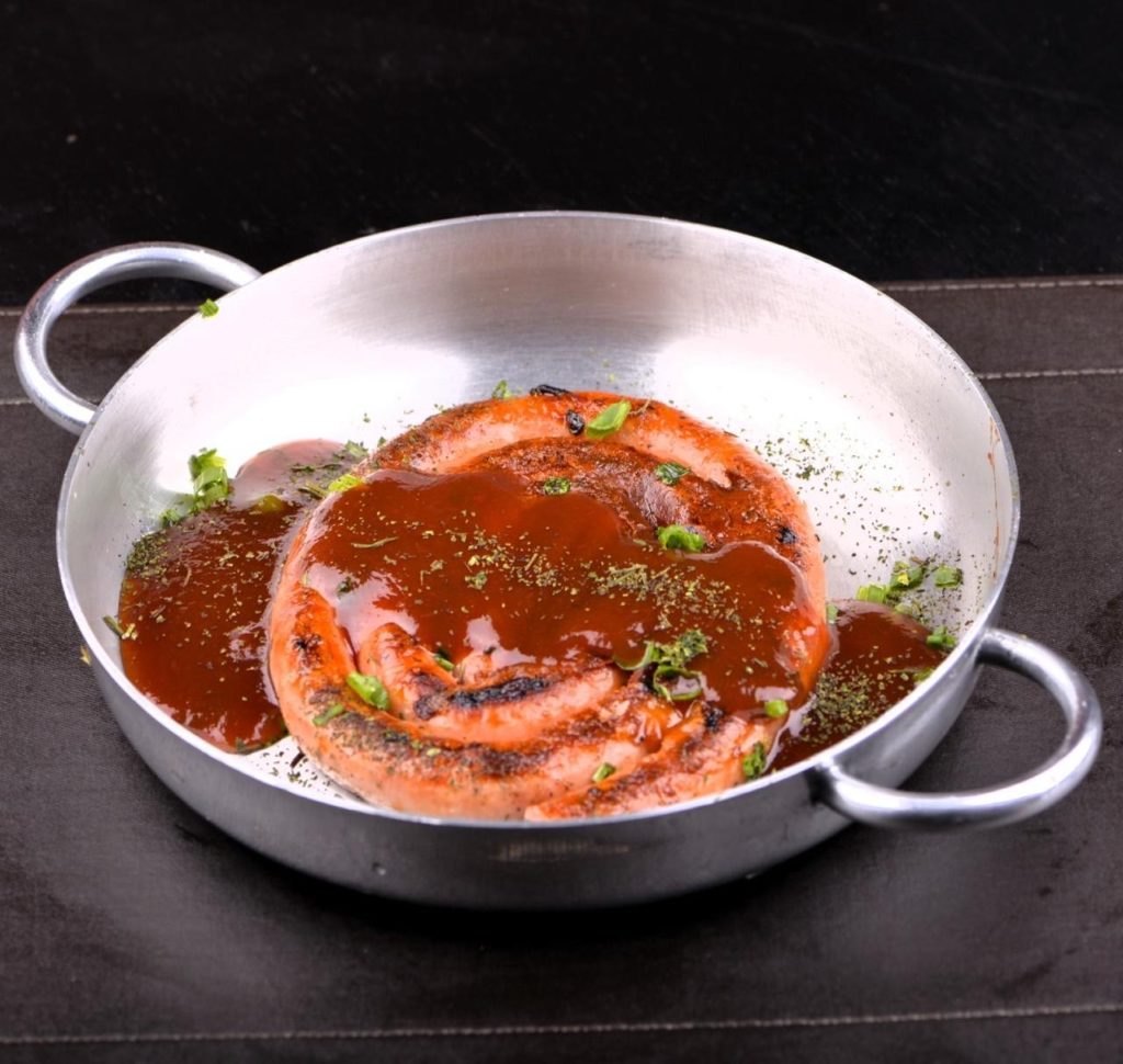 Na parte bovina e suína, destaque para a picanha na brasa com chimichurri (R$ 159); o filé mignon na brasa (na manteiga de ervas ou gorgonzola – R$ 159) e a linguiça de porco na brasa (com provolone e molho barbecue em porção individual – R$ 39). Todos os valores acompanham quatro guarnições fixas: farofa e vinagrete portenho sempre com as carnes, e maionese de galeteria; baião de dois ou arroz branco; farofa de ovos e salada da casa (alface, tomate, alho e cebola).