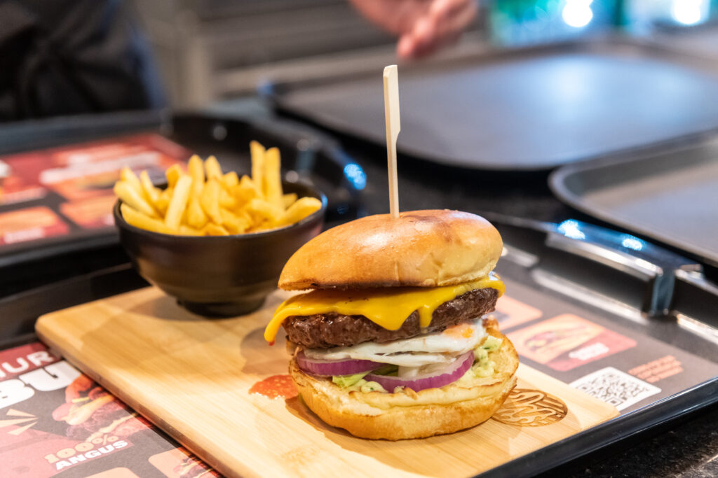O menu destaca pratos como o clássico Hambúrguer 100% Angus (blends de cortes nobres de carne 100% bovina Angus 150g, servido no prato com acompanhamentos a escolha do cliente), Sobrecoxa desossada (sobrecoxa de frango desossada e sem pele), Picanha Nobre (150g in natura de picanha macia e suculenta), e Burgers (com nove opções: Clássico, Cheese Salad, Cheese Burger, Cheese Bacon, Cheese Egg, Angus Crispy, Green Burger, Barbecue e Smoked Onion – todos com versão vegetariana) e o mais novo lançamento Ribeye (conhecido como filé de costela, o corte de 150g in natura se destaca pela maciez, suculência e alto nível de sabor).