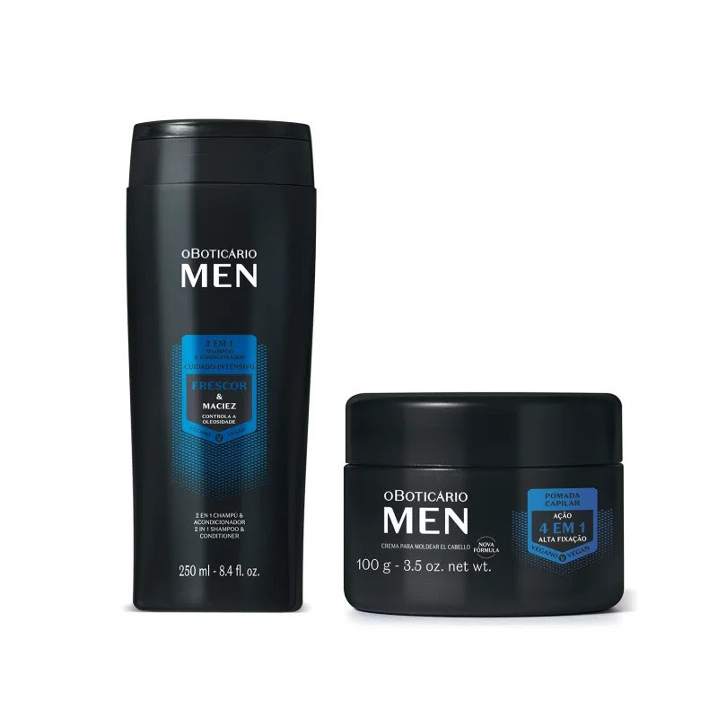 Combo Men Cabelos: Shampoo e Condicionador 2 em 1 250ml + Pomada Capilar 4 em 1 100g | Preço sugerido: R$ 92,80