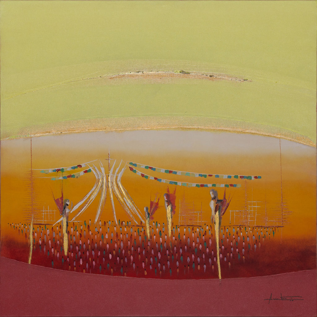 Entre os quadros reunidos na exposição, destacam-se também os dípticos criados por Paulo Cavalcante — composições formadas por duas partes que se relacionam como atos de um mesmo gesto, revelando ao mesmo tempo a unidade e o fragmento, a costura de sentidos que se abre ao jogo.