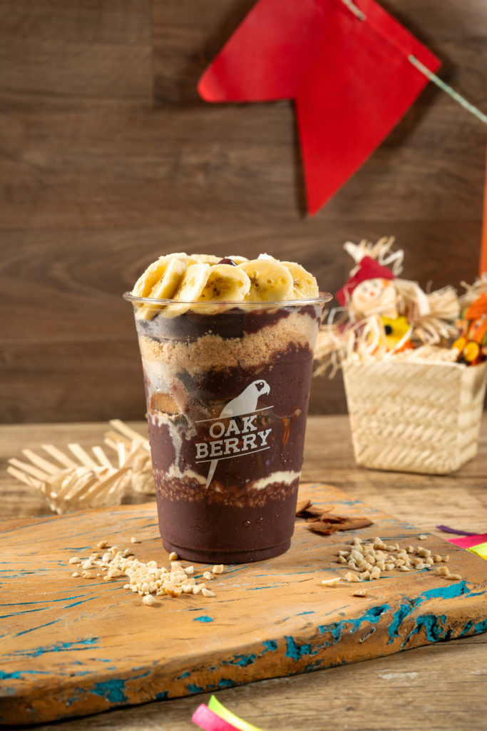 Oakberry: Bowl Works Oak Rock (açaí, paçoca zero, amendoim, leite Ninho, coco rock e banana – R$34,00).