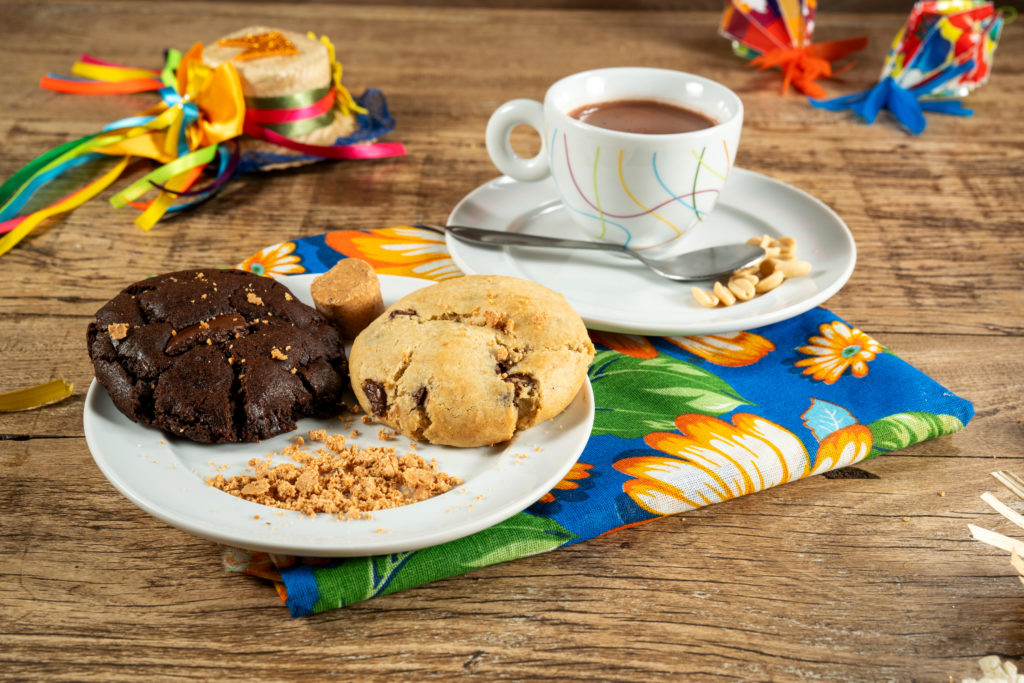 American Cookies: cookie de doce de leite com farofinha de paçoca (R$19) e chocolate quente com raspas de amendoim (R$19,00).